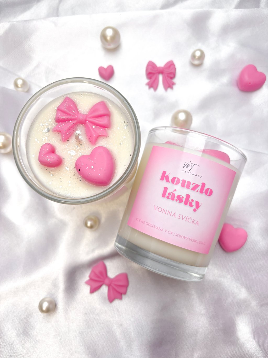 Neobyčejná svíčka pro neobyčejné okamžiky. Zapomeňte na nudné svíčky z regálů. Každou svíčku jsme pro vás ozdobily unikátními voskovými tvary a jemnými třpytkami, které se po zapálení roztančí v jezírku vosku a vytvoří magickou podívanou. Není to jen zdroj světla, ale designový doplněk, který pozvedne atmosféru vašeho domova.