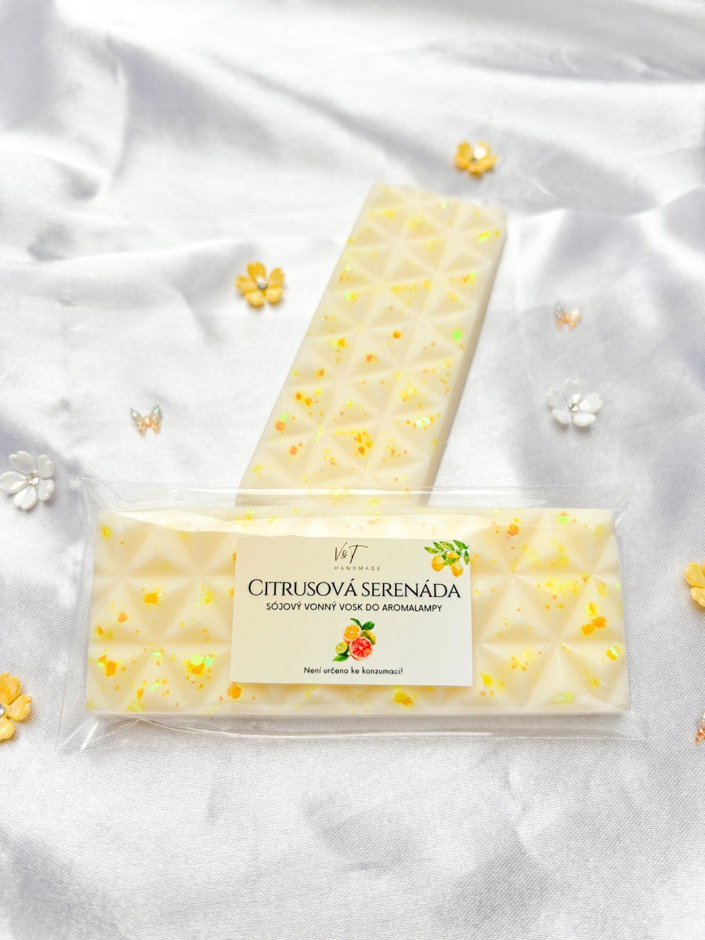 • Používáme 100% sójový vosk, který je veganský a cruelty-free. Neobsahuje palmový olej, parafín, herbicidy, pesticidy, konzervační látky. Je získáván z geneticky nemodifikované sóji.